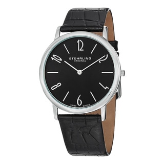 SaleStuhrling Original Men's Black 'Belmont' Ultra Slim Silvertone Watch