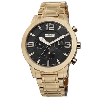 This August Steiner men's watch features a cd-pattern dial and Tachymeter ring. The bold minute-tracker on the bezel and date indicator at 3 o'clock position makes this a practical timepiece. The reliable Swizz quarts movement will not let you down.| Caractéristiques | |