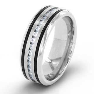 SaleCrucible Stainless Steel Polished Cubic Zirconia Inlay Ring