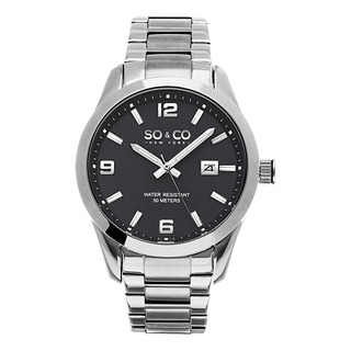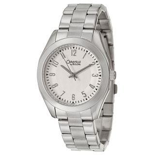 "The Caravelle of New York by Bulova men's stainless steel watch features an etched grey dial with silver tone accents. Featuring 30M water resistance, a date window at 3:00 o’clock and a push button release bracelet you will be in style.| Caractéristiques | |