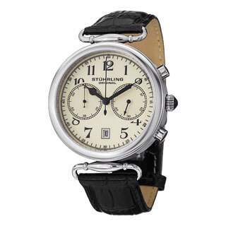 Prepare to be noticed. The rich hues of the 42mm stainless steel silver-tone case, white dial and black leather strap with buckle create a warm and fashionable palette. Day and date indicators are located in subdials at 3 and 9 o'clock positions, adding to the symmetry of the generous dial which sits beneath a spherical crystal.| Caractéristiques | |