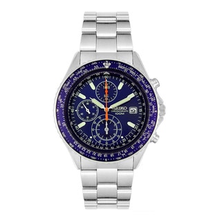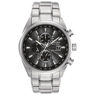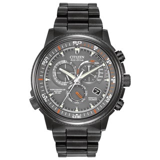Citizen Eco-Drive Radio-Controlled Chronograph World Timer; Blue Angels edition with caseback insignia. Automatic time in 26 world cities; radio-controlled accuracy in 5 zones. 1/20 second chrono measures up to 60 minutes, perpetual calendar, 12/24 hour time, power reserve, non-reflective sapphire crystal. Stainless steel with blue ion plating.| Caractéristiques | |