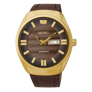 Timeless appeal abounds with this retro, stainless steel watch gold tone with 36mm case and brown leather strap. The brown dial, along with the interplay of Arabic numerals and stick markers, and day-date indicator, lend an air of practicality to this 3-hand model with 36mm case.| Caractéristiques | |