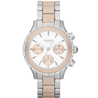 A Mother of Pearl dial and crystal indices add a dash of feminine style to this DKNY watch. Constructed of stainless steel, this watch features chronograph subdials for precise timekeeping.| Caractéristiques | |
