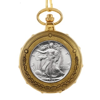 SaleAmerican Coin Treasures Silver Walking Liberty Half Dollar Goldtone Train Pocket Watch