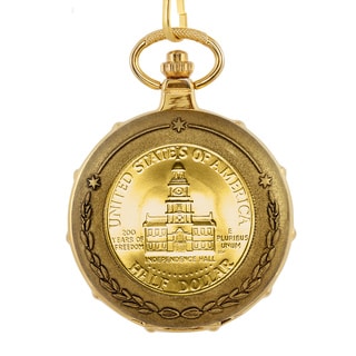 SaleAmerican Coin Treasures Men's 13229 JFK Bicentennial Half Dollar Goldtone Train Pocket Watch with Skeleton Movement