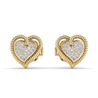 SaleDe Couer 10k Yellow Gold 1/10ct TDW Diamond Heart Earrings (H-I, I2)