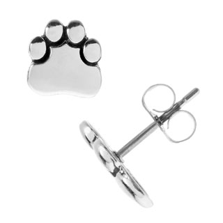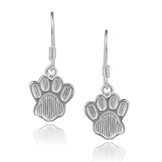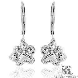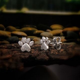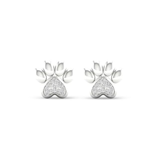 These fun earrings features white gold construction with sparkling white diamonds set on dog paw print designs. These polished earrings fasten with butterfly clasps on posts.White Diamonds: