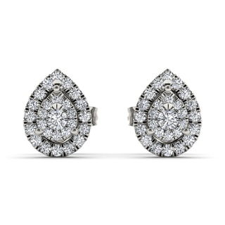 SaleDe Couer 10k White Gold 1/2ct TDW Diamond Cluster Earrings (H-I, I2)