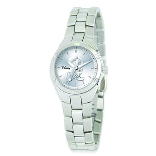 This stunning women's Mickey Mouse Watch from Disney features an alloy case with a coordinating polyurethane strap. The charcoal dial sets the stage for black and white arm shaped hands and silver Roman numerals.| Caractéristiques | |