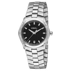 This Ebel Men's 'Classic' timepiece showcases a stainless steel bezel housing a black dial with silvertone hands and indices. Complete with a date display at 3 o'clock, this handsome watch is finished don a stainless steel bracelet.- Case: Stainless steel