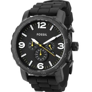 SaleFossil Men's 'Nate' Chronograph Black Silicone Watch