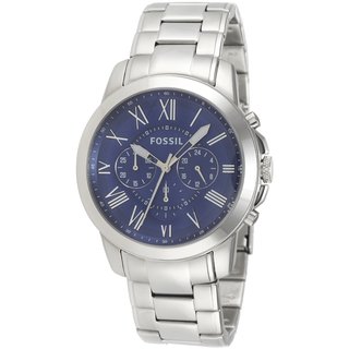 SaleFossil Men's 'Grant' Blue Dial Stainless Steel Watch