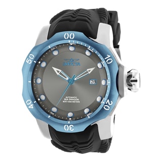 Be a force to be reckoned with in this men’s luxury watch by Invicta. This stainless steel watch features a textured blue bezel and a black dial with subdials and minute markers around the rim. A high-grade silicone strap secures with a tang buckle.- Case: Round, polished, stainless steel