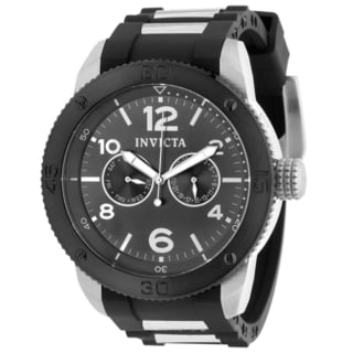 This Invicta 'Specialty/Corduba' men's black polyurethane watch features a black textured dial. It also includes a Japanese quartz movement and secures with a tang buckle clasp.| Caractéristiques | |