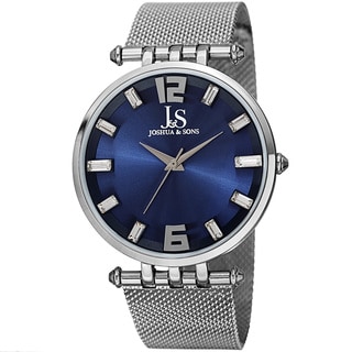 SaleJoshua & Sons Men's Swiss Quartz Crystal-Accented Stainless Steel Mesh Strap Watch