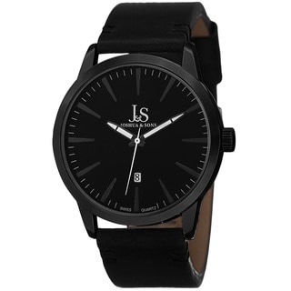 This classically elegant Joshua & Sons men's watch features a black dial with white markers. A date indicator at the 6 o'clock position and a genuine leather strap creates a practical timepiece. The reliable Japanese quartz movement will not let you down.Men's watch bands can be sized to fit 7.5-inch to 8.5-inch wrists.