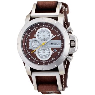 SaleFossil Men's JR1157 Brown Leather Strap Brown Dial Chronograph Watch