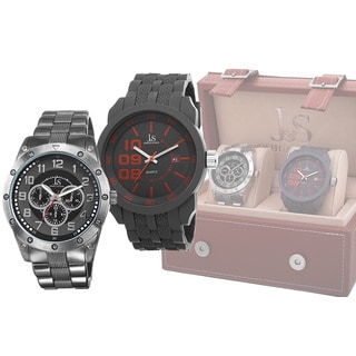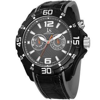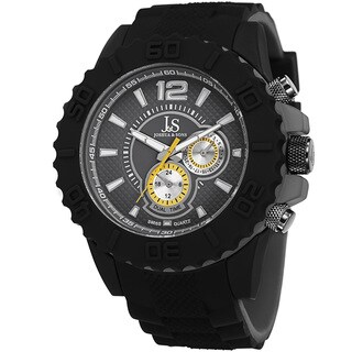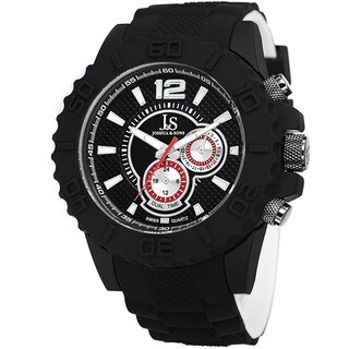 Joshua & Sons does it again with this bold men's timepiece. Featuring Swiss quartz movement with dual time and a brazen bezel, this watch is a must have. The two tone silicone strap adds to the charm of this vigorous look.| Caractéristiques | |