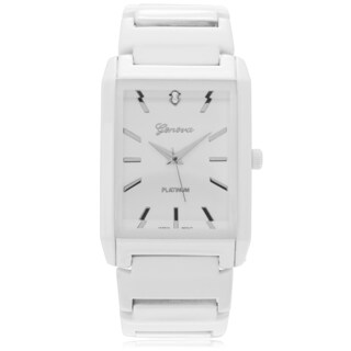 SaleGeneva Platinum Men's Rectange Face Polished Link Watch