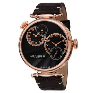 SaleAkribos XXIV Men's Japanese Quartz Dual Time Genuine Leather Strap Watch