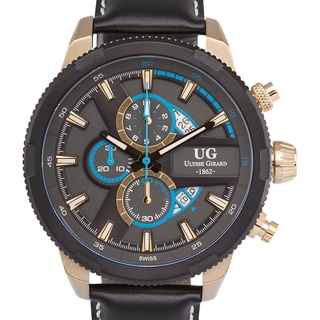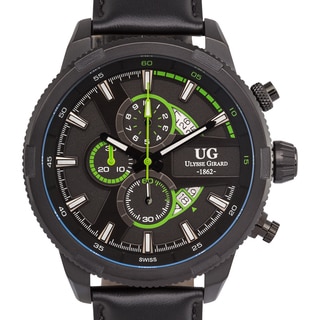SaleUlysse Girard Masson Swiss Chronograph Men's Watch Stainless Steel 22mm Genuine Leather Strap