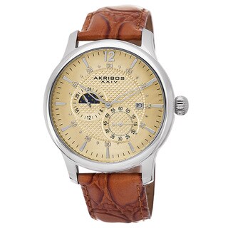 SaleAkribos XXIV Men's Brown Leather Strap Swiss Collection Chronograph Watch with Gold Face