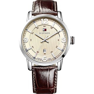 Show off striking style in this men's strap watch by Kenneth Cole! This sharp watch features a round face that highlights a textured silver dial with silver line indices and minute markers. A croc patterned leather strap secures with a tang buckle clasp.- Case: Polished, round