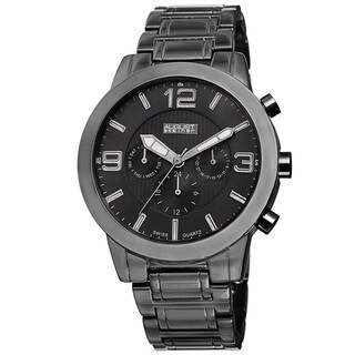 Show off striking style in this men's strap watch by Kenneth Cole! This sharp watch features a round face that highlights a black dial with silver line indices. Lustrous gun-metal links create a bracelet that secures with a deployment clasp.| Caractéristiques | |