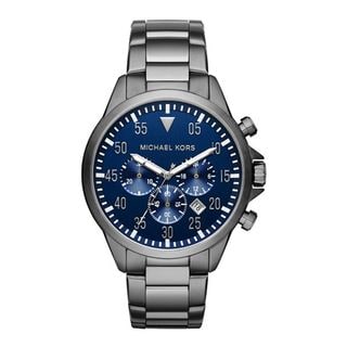 SaleMichael Kors Men's MK8443 Gage Chronograph Blue Dial Gunmetal Stainless Steel Bracelet Watch