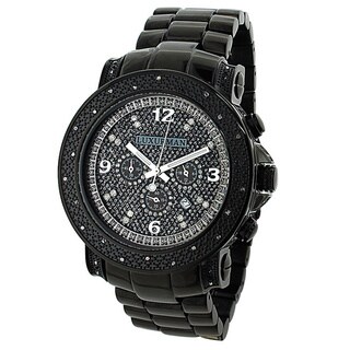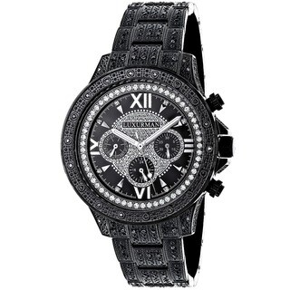 SaleLuxurman 3/4ct TDW Diamond Men's Oversized Black Watch Metal Band plus Extra Leather Straps