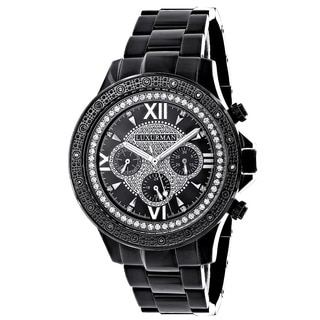 Luxurman Men's 1/4ct Black Diamond Chronograph Watch Metal Band plus Extra Leather Straps
