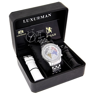 SaleLuxurman Men's 1/5ct Diamond Color World Map Watch with Metal Band and Extra Leather Straps