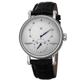 SaleAkribos XXIV Men's Automatic Etched Pattern Dial Genuine Leather Strap Watch