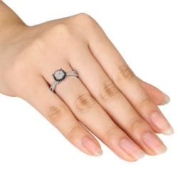 Miadora 10k White Gold 1/2ct TDW Black and White Diamond Halo Ring