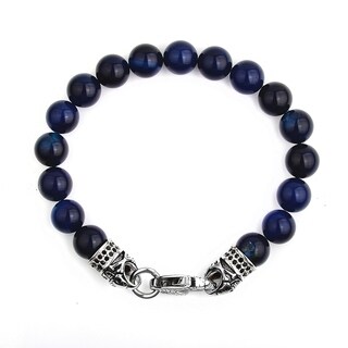 SaleCrucible Stainless Steel Dragon with Polished Blue Onyx Beaded Bracelet