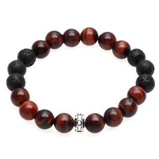 SaleCharming Life Red Tiger's Eye and Lava Rock 'Lucky Me' Unisex Stretch Bracelet