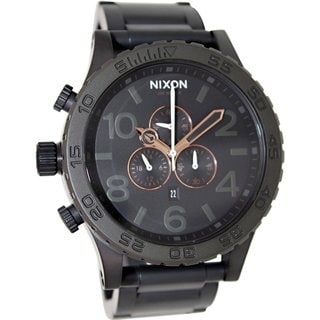 This classic timepiece by Nixon features a stainless steel case and bracelet. A black dial, precise quartz movement and a water-resistance level of up to 300 meters finish this fine timepiece.| Caractéristiques | |