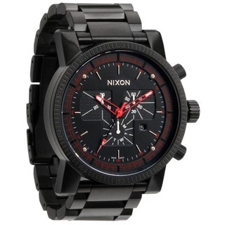 This stylish timepiece by Nixon offers a stainless steel case and bracelet in a rich black finish. The watch features a black dial, a date display, quartz movement water-resistant to 300 meters.| Caractéristiques | |