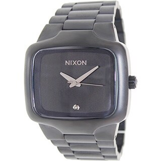 This sophisticated men's 'Player' watch from Nixon features a matte grey stainless steel case with a matching bracelet. The black dial sets the stage for a shimmering black dial with a single diamond accent.- Case: Stainless steel