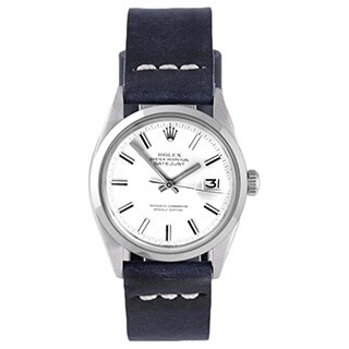It is common industry standard for an authentic pre-owned Rolex watch to have a generic non-branded genuine leather strap as many authentic pre-owned Rolex models from this timeframe have stretched bands/bracelets