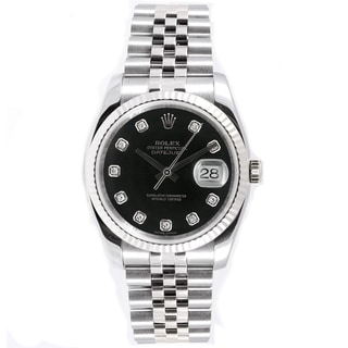 SalePre-owned Rolex Men's Stainless Steel Datejust Watch Black Dial 18k White Gold Bezel