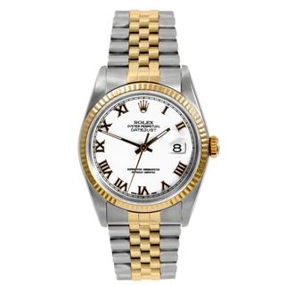 SalePre-owned Rolex Men's Datejust Two-tone White Roman Dial Watch