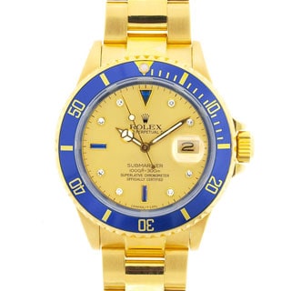 SalePre-owned Rolex Men's Submariner Date 18K Gold Blue Diamond Serti Dial Watch