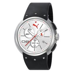 This men's hero watch from Puma features a stainless steel case with a coordinating black polyurethane strap. The white dial sets the stage for three hands and a date display for easy date and time-telling.| Caractéristiques | |