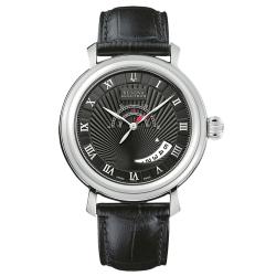 The Maestro wristwatch by Raymond Weil has a skeleton caseback displaying its automatic movement. This men's watch features a silver guilloche dial with chronograph functions and stainless steel bracelet.| Caractéristiques | |