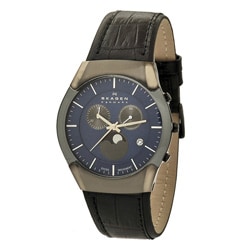 This sophisticated men's watch from Skagen features a stainless steel case with a coordinating textured black genuine leather strap. The stylish blue dial sets the stage for luminous silvertone hands and indices for easy time-telling.| Caractéristiques | |
