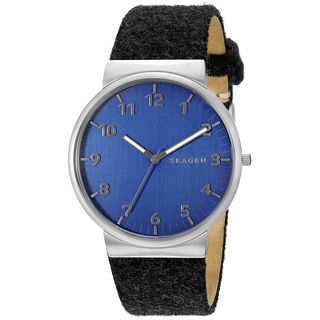 The skies in Skagen are bluer than just about anywhere else in the world. Now find their rich color in a watch featuring a brushed silver case, super hardened crystal, sunray blue dial with a 3 hand Japanese quartz movement and date function, wrapped in a Genuine Leather band.- Case: Stainless steel