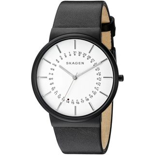 Fashion forward design and technical mastery. Skagen watches offer elegance, functionality and durability that is affordable and luxurious. This men's watch from the Ancher collection features a black leather strap and black dial.| Caractéristiques | |