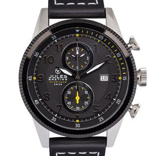 SaleJules Breting Adama Swiss Chronograph Men's Quartz 22mm Genuine Leather Strap Watch